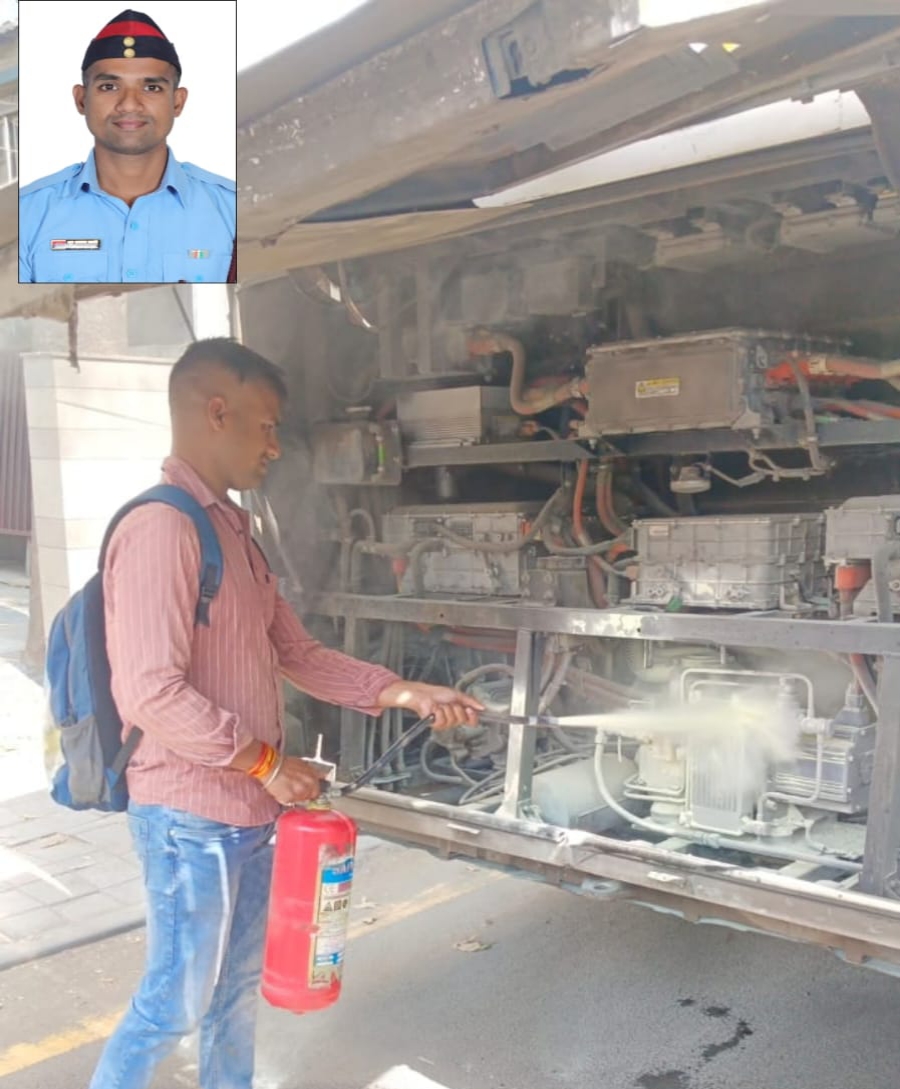 त्याचवेळी घटनेचे गांभीर्य लक्षात घेत तातडीने प्रथमत: बसमधील प्रवाशांना वाहनचालक तसेच वाहक यांच्या मदतीने सुरक्षित बाहेर घेत अग्निरोधक उपकरण (फायर एक्स्टिंग्युशर) बसमधून घेऊन त्याचा वापर करीत पाचच मिनिटात आग पुर्ण विझवून पुढील अनर्थ टाळला. बस व प्रवासी यांचे आगीमध्ये होणारे मोठे नुकसान ही टाळत आपले कर्तव्य चोख बजावले.