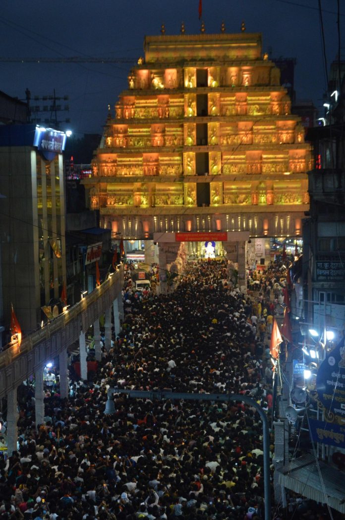 Newsworldmarathi Pune: श्रीमंत दगडूशेठ हलवाई सार्वजनिक गणपती ट्रस्ट, सुवर्णयुग तरुण मंडळ च्यावतीने ट्रस्टच्या १३३ व्या वर्षी गणेशोत्सवात केरळमधील श्री पद्मनाभ स्वामी मंदिराची प्रतिकृती साकारण्यात आली आहे. श्री गणेश चतुर्थीला मंदिरावरील विद्युतरोषणाईचे उद्घाटन राज्यमंत्री माधुरी मिसाळ यांच्या हस्ते झाले.