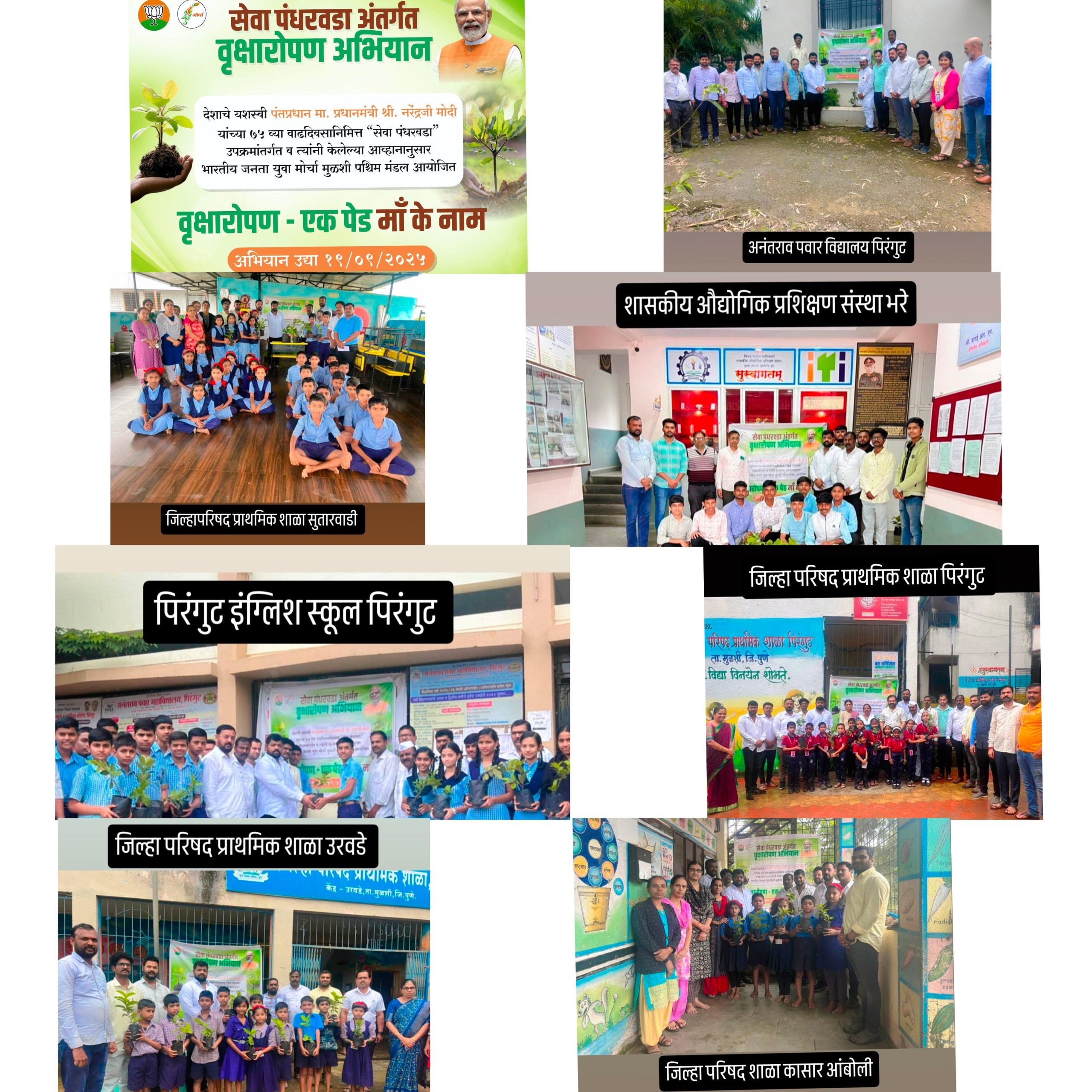 वृक्षारोपण उपक्रम मुळशी तालुक्यातील विविध जिल्हा परिषद शाळा, आयटीआय, तसेच कॉलेजेसमध्ये आयोजित करण्यात आला. या अभियानाचा उद्देश पर्यावरण संवर्धनाबरोबरच पंतप्रधान मोदी यांनी दिलेल्या “सेवा हेच परमधर्म” या संदेशाशी सुसंगत पद्धतीने समाजाप्रती आपली बांधिलकी व्यक्त करणे हा होता.