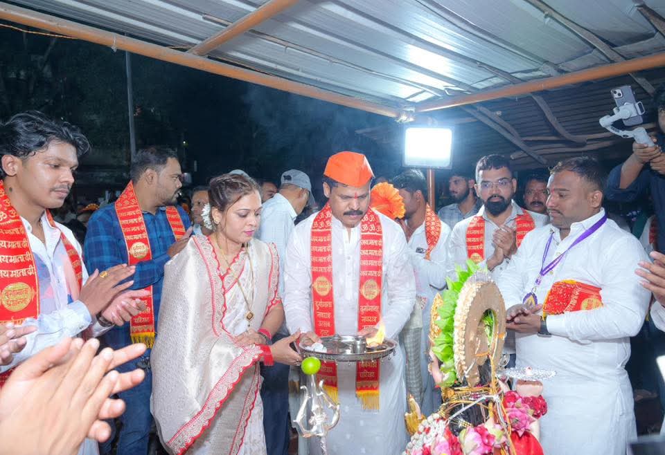 देवीची भव्य आरती दुर्गामाता नवरात्र उत्सव ट्रस्टच्या महिला अध्यक्षा मा. नगरसेविका रूपाली धाडवे यांच्या हस्ते तसेच मंडळाचे आधारस्तंभ मा. नगरसेवक दिनेश उर्फ पिंटूभाऊ धाडवे यांच्या हस्ते करण्यात आली. आरतीच्या वेळी उपस्थित भाविकांनी ‘दुर्गामातेचा जयघोष’ करत वातावरण अधिक भक्तिमय केले.