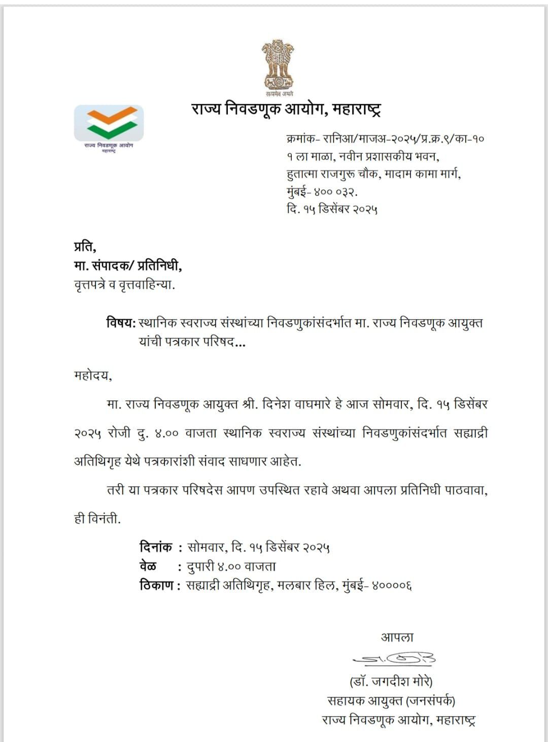 राज्य निवडणूक आयोगाने ही पत्रकार परिषद मुंबईतील सह्याद्री अतिथीगृह येथे आयोजित केली आहे. या पत्रकार परिषदेत आयोगाकडून महापालिका आणि जिल्हा परिषदेच्या निवडणुकीच्या तारखा आणि संपूर्ण कार्यक्रम जाहीर केला जाईल, अशी माहिती समोर येत आहे. राज्याच्या राजकारणावर दूरगामी परिणाम करणाऱ्या या निवडणुकांना मिनी विधानसभा म्हणूनही ओळखले जाते. या निवडणुकीमुळे राज्यातील अनेक महत्त्वाच्या शहरांमधील कारभाराची दिशा ठरणार आहे. या बहुप्रतिक्षित निवडणूक कार्यक्रमात प्रामुख्याने खालील १५ मोठ्या महापालिकांचा समावेश असेल, अशी माहिती समोर येत आहे.