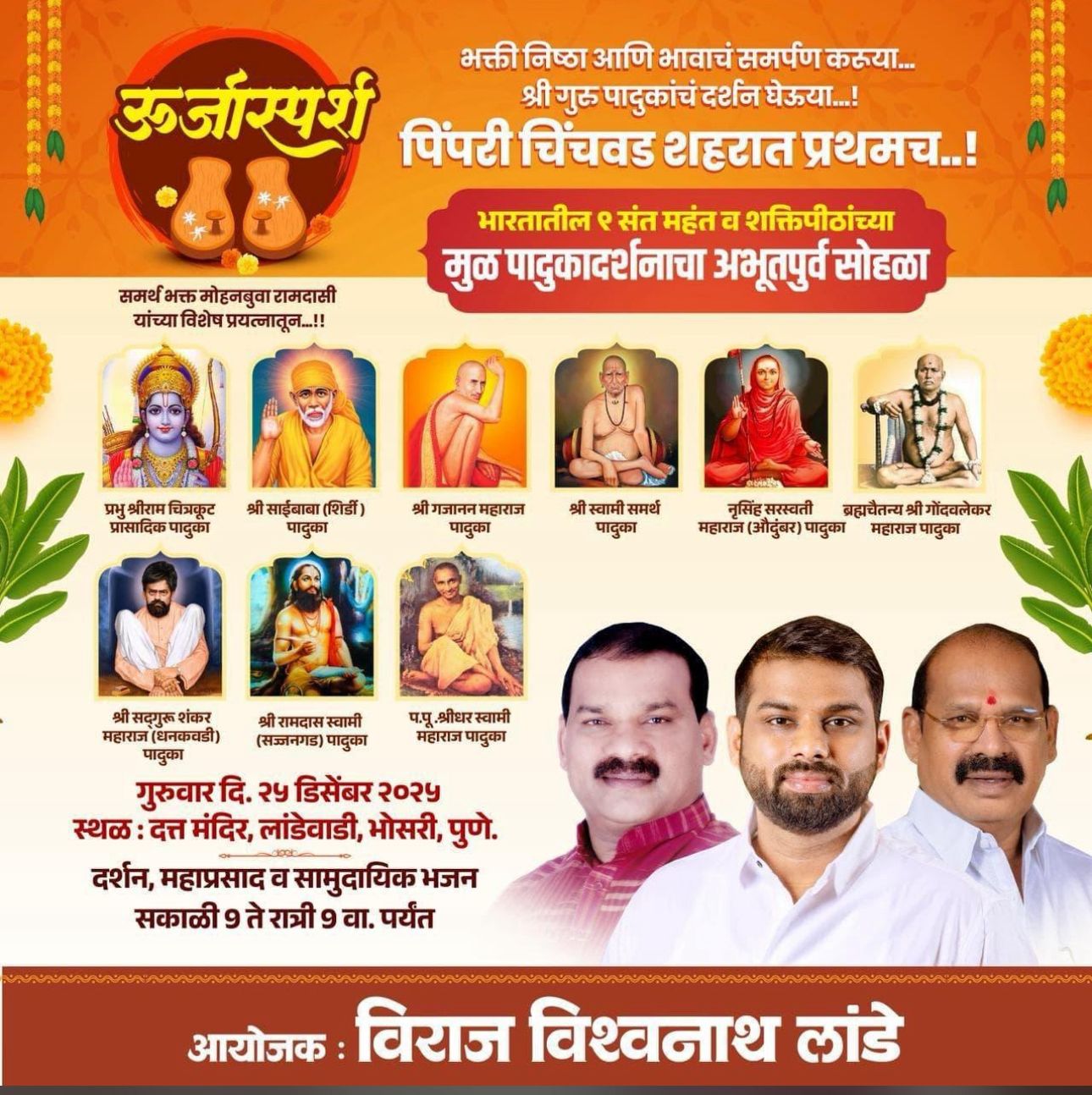 पिंपरी-चिंचवडमध्ये प्रथमच ‘गुरुजयंती’; संतांच्या मूळ पादुकांचे भव्य दर्शन: विराज विश्वनाथ लांडे यांच्या वतीने आयोजन