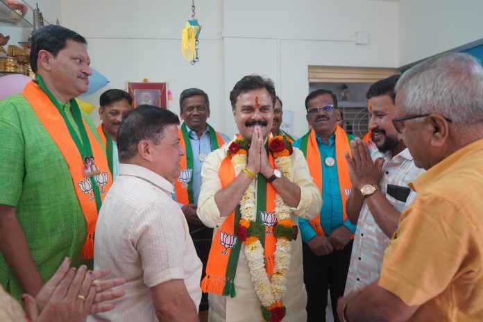 Newsworldmarathi Pune: प्रभाग क्रमांक २५ शनिवार पेठ–महात्मा फुले मंडई येथील भारतीय जनता पक्षाचे अधिकृत उमेदवार राघवेंद्र बाप्पु मानकर यांनी प्रभागातील विविध भागांमध्ये घरोघरी भेटी देत नागरिकांशी संवाद साधला. या वेळी अनेक ठिकाणी नागरिकांनी औक्षण करून त्यांचे स्वागत करत आशीर्वाद दिले.