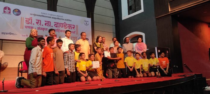 Newaworldmarathi Pune: डेक्कन एज्युकेशन सोसायटीच्या फर्ग्युसन कॉलेज आयोजित डॉ.रा.ना.दांडेकर चषक संस्कृत एकांकिका स्पर्धेत न्यू इंग्लिश स्कूल रमणबाग प्रशालेला सांघिक प्रथम क्रमांक प्राप्त झाला. संस्कृत एकांकिकेचे नाव धैर्यं हि महतां धनम् असे होते.